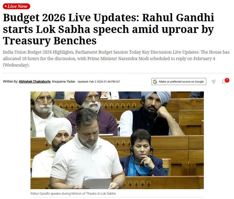 Indian Express live updates on Budget 2026: Rahul Gandhi starts Lok Sabha speech amid uproar