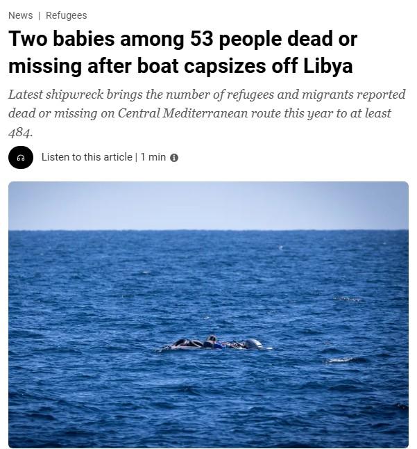Two babies among 53 people dead or missing after boat capsizes off Libya, Al Jazeera