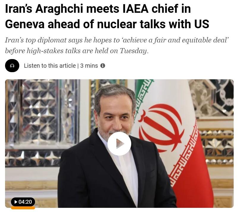 Iran’s Araghchi meets IAEA chief in Geneva ahead of nuclear talks with US, Al Jazeera