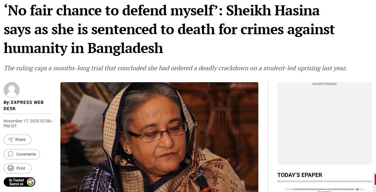 Sheikh Hasina sentenced to death in Bangladesh: Indian Express
