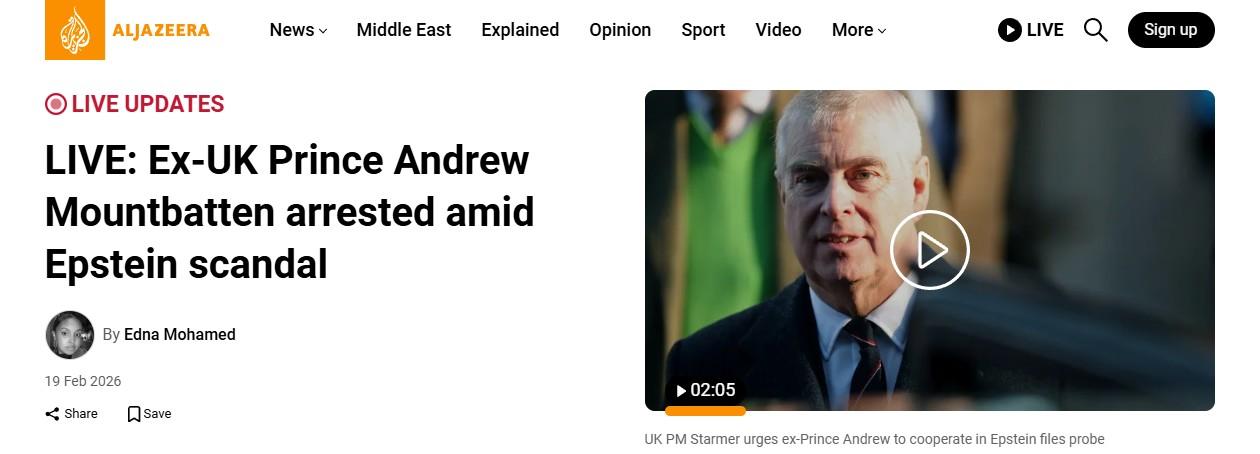Ex-UK Prince Andrew Mountbatten arrested amid Epstein scandal, Al Jazeera reports