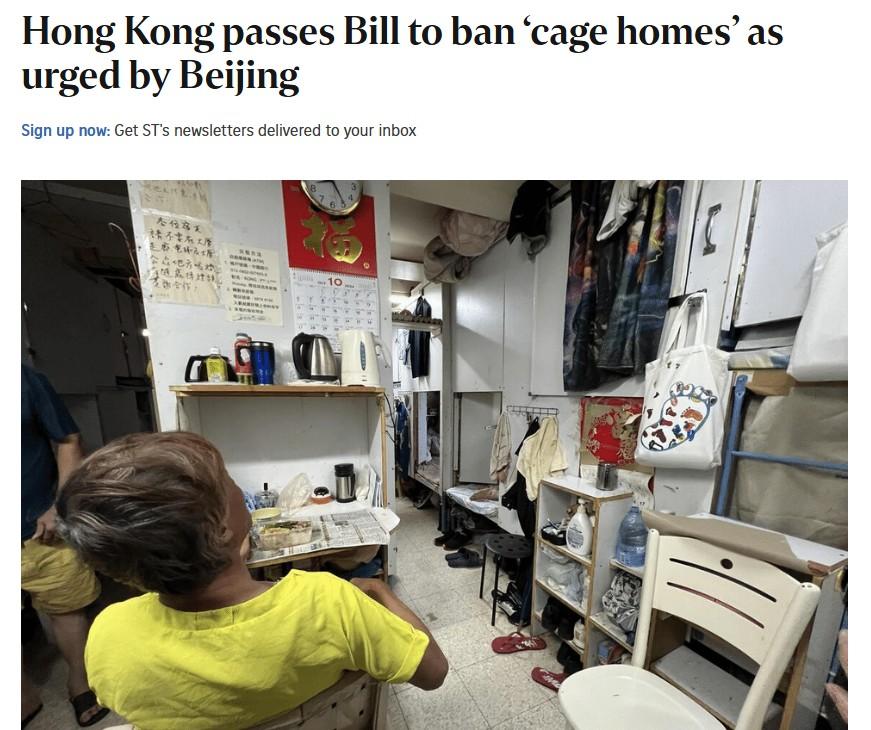 The Strais Times: Hong Kong passes Bill to ban ‘cage homes’ as urged by Beijing