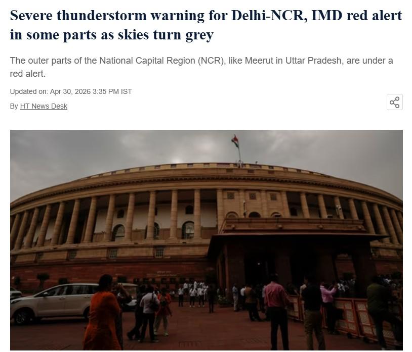 Severe thunderstorm warning for Delhi-NCR, Hindustan Times reports