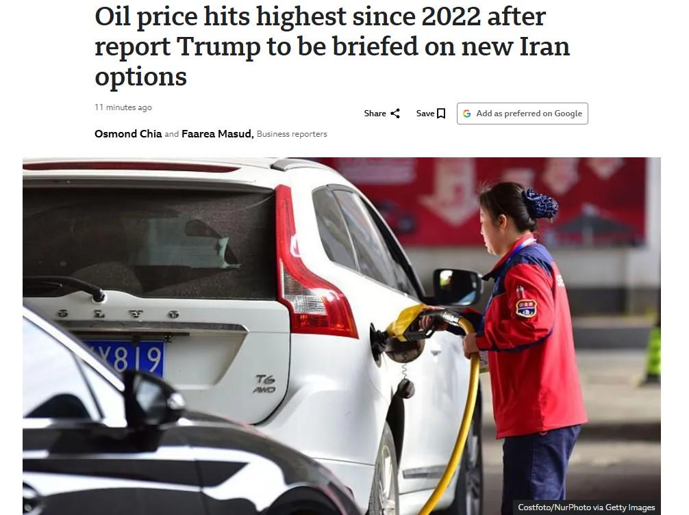 Oil prices jumped to their highest since 2022 after a report that the US military is set to brief US President Donald Trump on new plans for potential action in the Iran war, BBC reports. US Central Command has prepared a plan for a wave of "short and powerful" strikes on Iran to try to break the deadlock in negotiations with Tehran, news site Axios reported. The BBC has contacted US Central Command and the White House for comment. Brent crude rose by almost 7 percent to more than $126 (£94) a barrel at one point, the highest since Russia's full-scale invasion of Ukraine. Read the full report here.