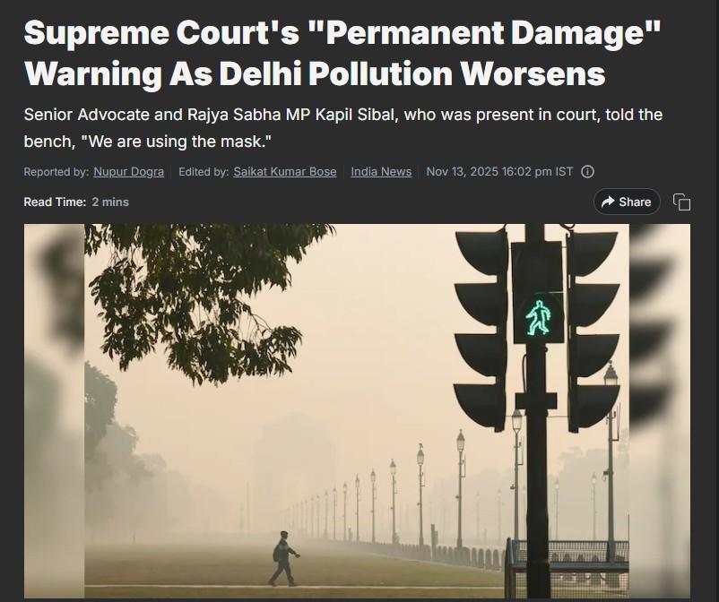 NDTV on Supreme Court's "permanent damage" warning as Delhi pollution worsens