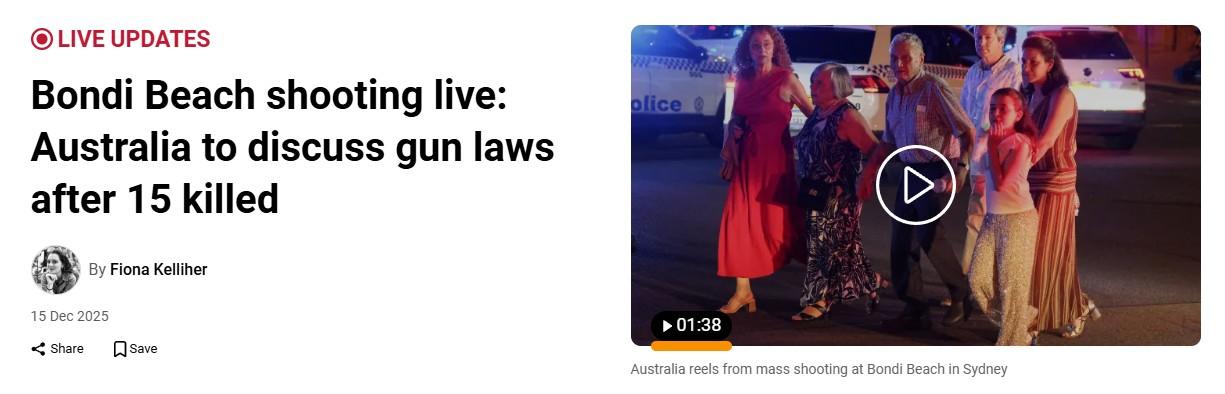 Al Jazeera: Australia to discuss gun laws after 15 killed after Bondi Beach shooting
