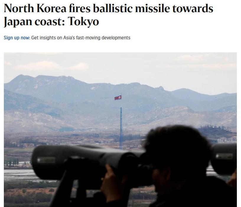 Tokyo says North Korea fires ballistic missile towards Japan coast: The Straits Times