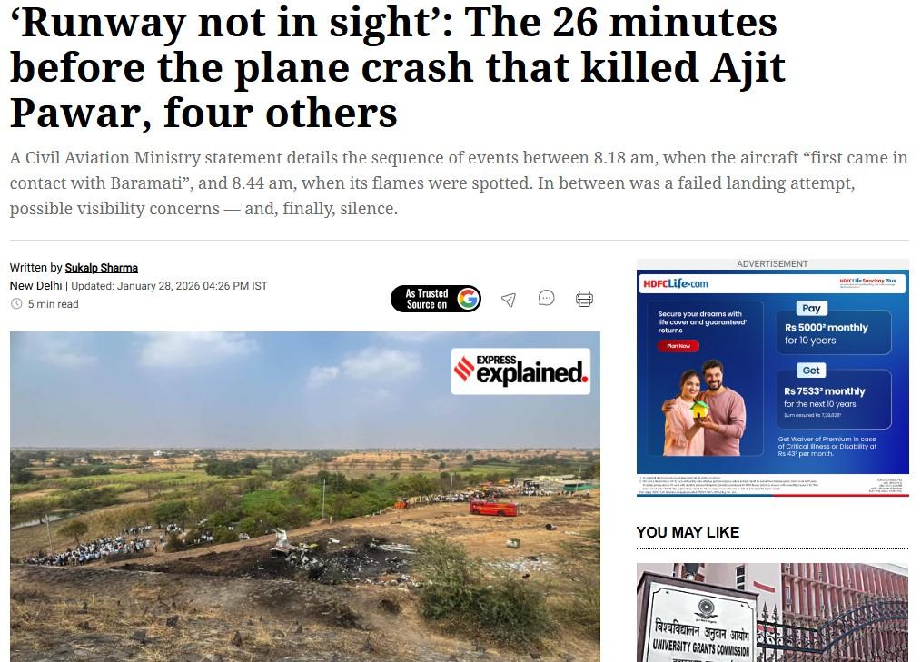Indian Express on the 26 minutes before the plane crash that killed Ajit Pawar